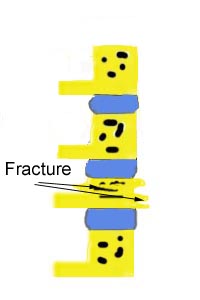 The next drawing illustrates a compressed fracture of one of the vertebrae. This is