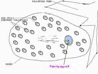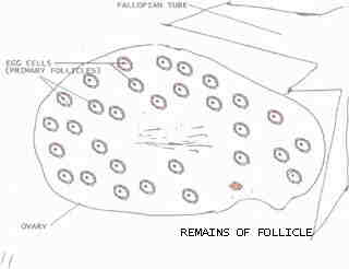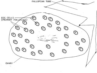 The following illustrated discussion will show how egg cells are released and will also be the basis for a discussion on ovarian cysts.