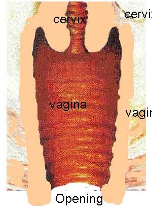 The vagina accomodates the the male penis during sexual intercourse. The male sperm cells (seed cells) are deposit in the upper part of the vagina.